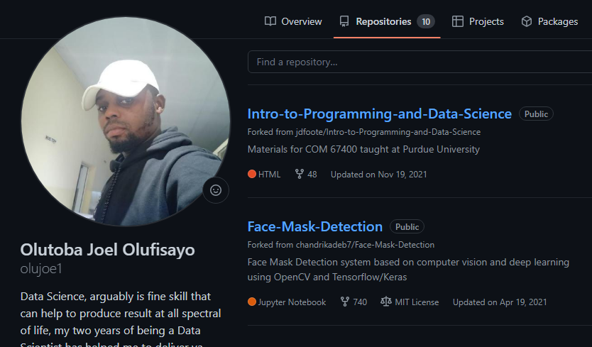 I have worked on numerous projects on ML, DL, Tableau, Microsoft PowerBi(Computer Vision, Natural Language Processing, Recommender System, Time Series Analysis and Data Science) within the period of experience in the field. Among are: